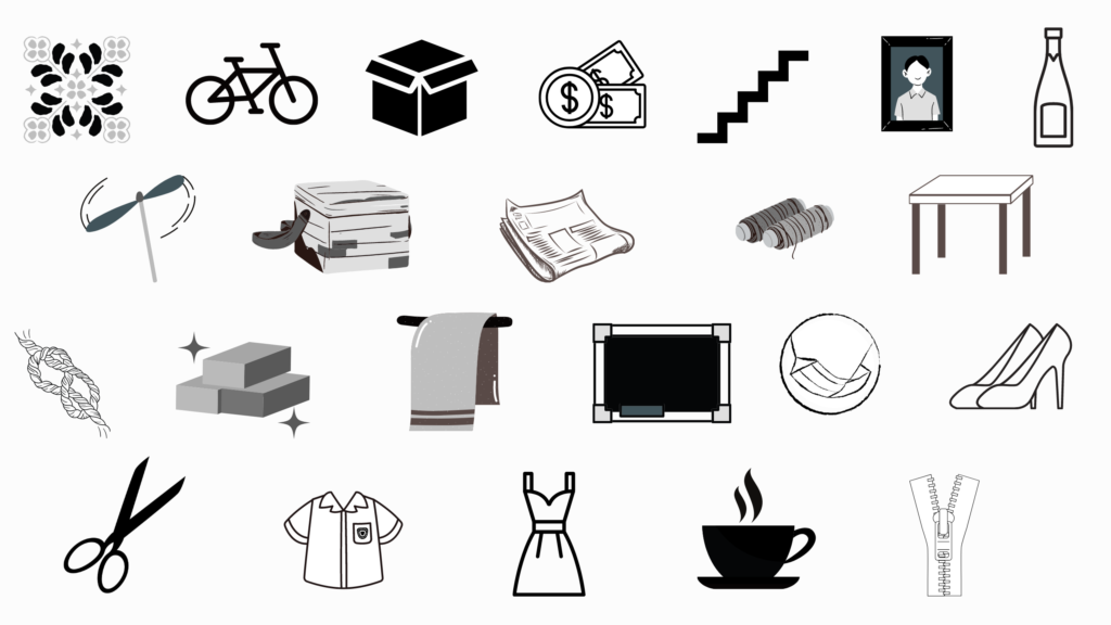 E, também, clique nas palavras abaixo e descubra qual obra foi criada a partir destes objetos: