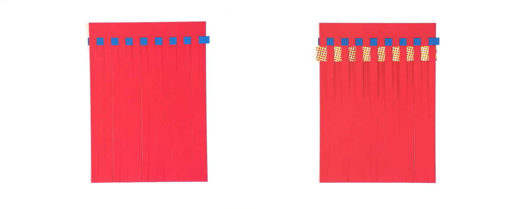 Já que falamos sobre tramas, vamos produzir nossas próprias tramas de papel? Para isso você vai precisar de régua, tesoura, lápis e papéis de cores variadas. Pode ser até de páginas de revistas usadas ou retalhos.