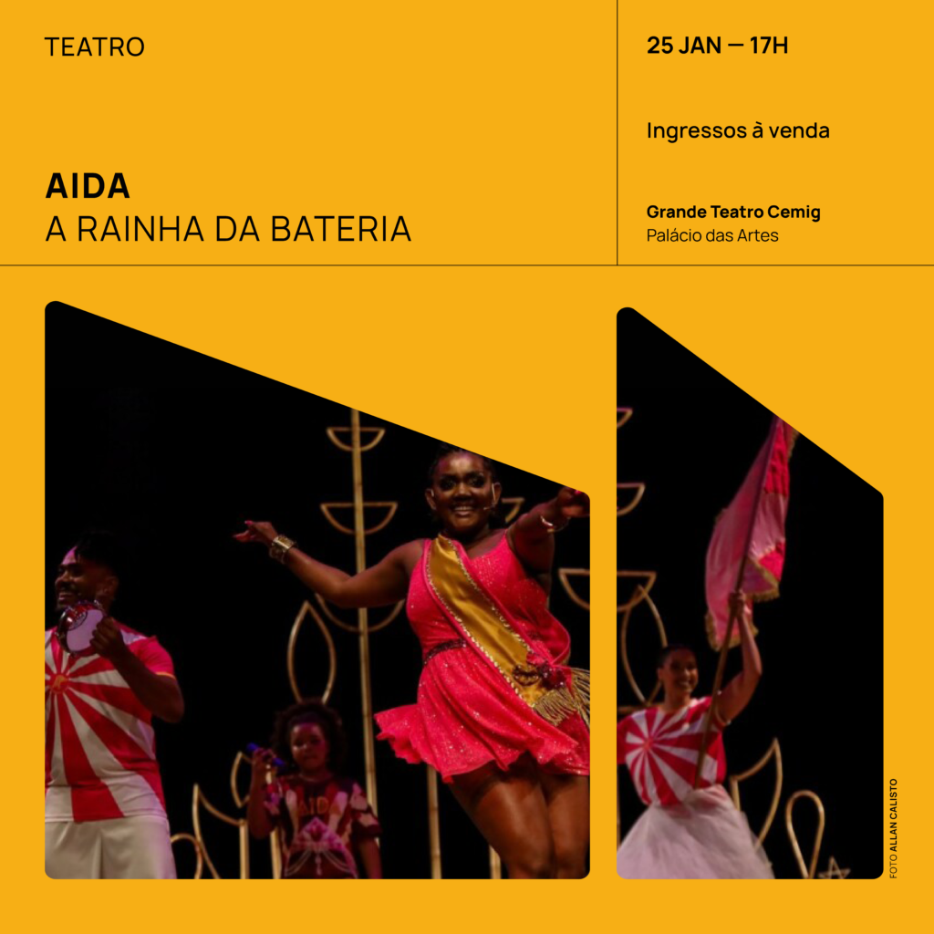 “AIDA: A RAINHA DA BATERIA” é uma adaptação inédita da ópera “Aída”, de Verdi, ambientada no universo do samba e da cultura afro-brasileira.