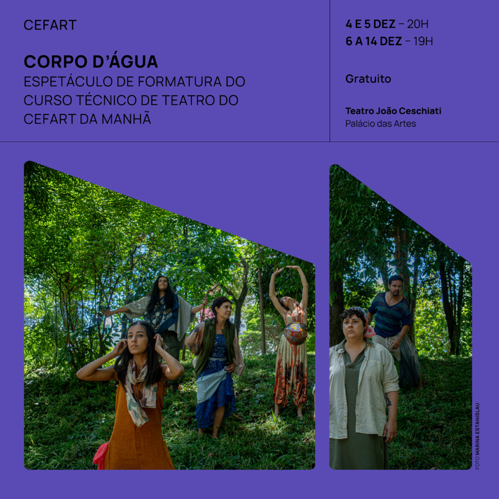 Professores da Escola de Teatro: Ana Hadad, Arthur Barbosa, Heverton Ferreira, Luiz Carlos Garrocho, Marcos Vinícius dos Santos, Maria Cordélia Galasso, Paulo Maffei, Polyana Lott, Rainy Campos, Renata Paz e Rogério Araújo.