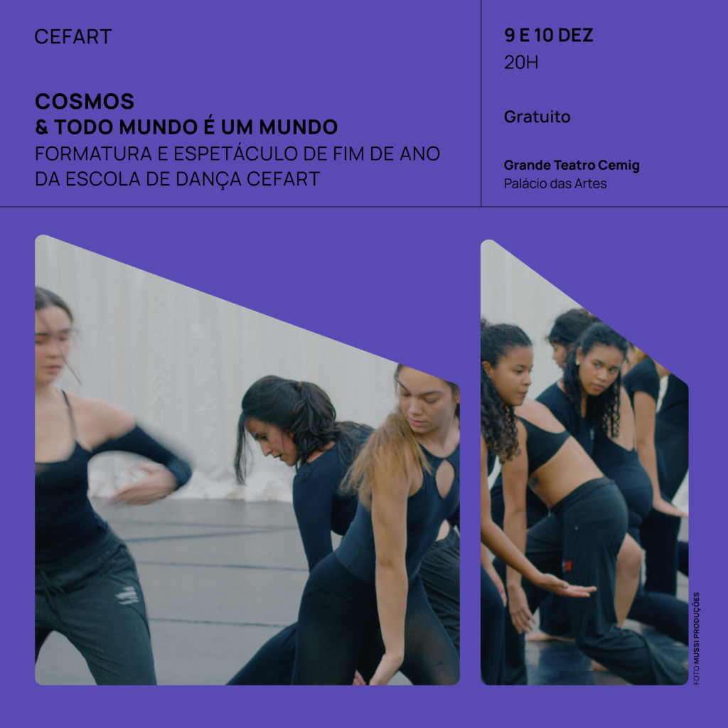 COSMOS é um espetáculo que nasce do impulso de criação e do desejo de inventar mundos possíveis. Criado para as formandas do Cefart, celebra o encerramento de um ciclo e anuncia novos começos. Entre dança e música, a obra tece memórias, afetos e descobertas que emergem do convívio artístico. A voz de Caetano Veloso atravessa a cena, ampliando a poesia dos gestos e das imagens. COSMOS é rito e travessia — um convite a olhar o presente como semente de tudo o que ainda pode nascer.