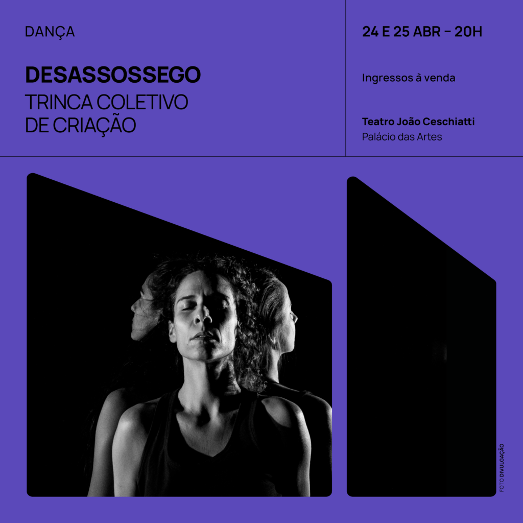 “Desassossego” é uma criação de dança contemporânea que entrelaça as narrativas de três mulheres a partir dos atravessamentos que as coletivizam e, ao mesmo tempo, as individualizam em suas existências femininas na sociedade contemporânea. A passagem do tempo, os projetos de vida, a maternidade, as perdas, as desilusões e os recomeços são alguns dos temas que permeiam este trabalho, que investiga, em sua pesquisa coreográfica, as relações de peso e suspensão como estímulos para o movimento. É a partir do que desassossega o corpo – do que se sente na pele, do que se prende na garganta, do que se vai em um sopro, do que transborda na lágrima, do que sustenta a escuta e do que permanece por dentro – que essa trinca de artistas coloca em diálogo memórias, sensações, impulsos e desejos, compondo diversos fragmentos de ser mulher que as multiplicam em muitas.