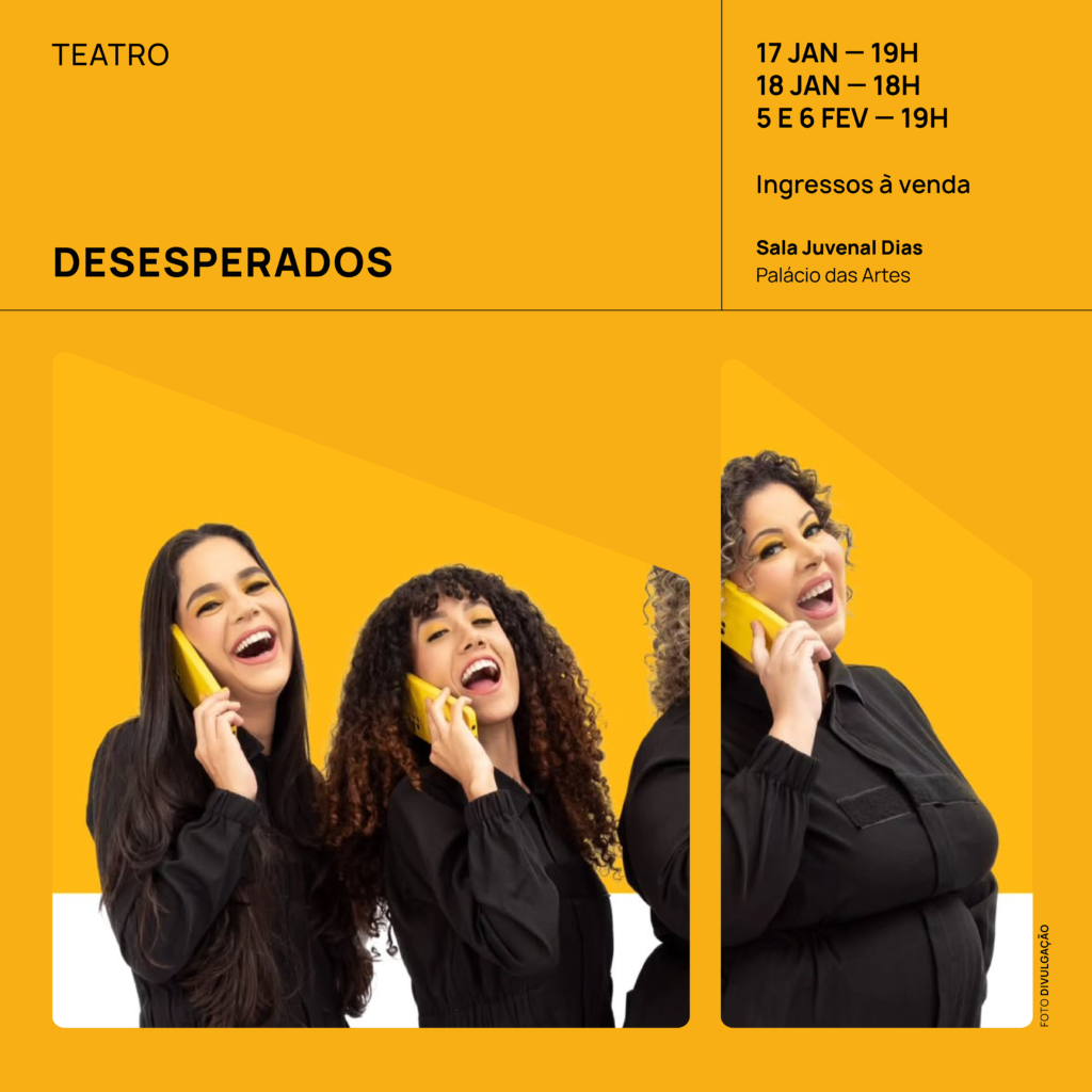 Intitulada como comédia inteligente “Desesperados” aborda temas frequentemente debatidos nas salas de terapia do mundo inteiro: ansiedade, depressão e solidão. O espetáculo gira em torno de três personagens principais: Bia, Marcondes e Ricardo, todos eles sofrem de depressão e carência. De tão problemáticos que são, a situação vivida por cada um deles acaba se tornando uma hilária comédia que conquistou BH, SP, RJ e Fortaleza. @desesperadosbh