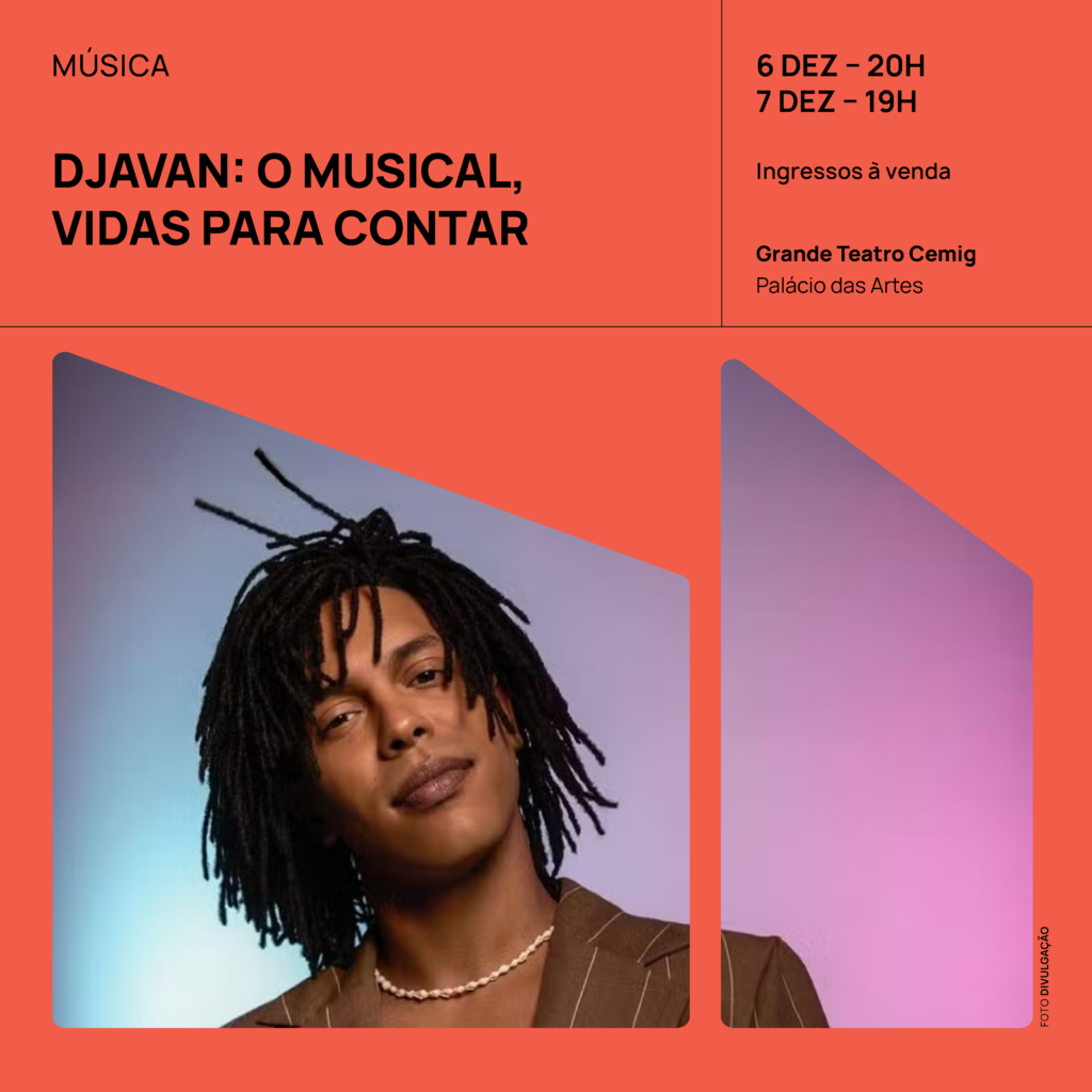 Nos dias 6 e 7 de dezembro de 2025, o Grande Teatro Cemig Palácio das Artes recebe “Djavan – O Musical: Vidas pra contar”, espetáculo que homenageia a trajetória e a obra do cantor e compositor alagoano. Idealizado por Gustavo Nunes, com direção artística de João Fonseca e texto de Patrícia Andrade e Rodrigo França, o projeto narra a caminhada de um dos artistas mais importantes da música brasileira.