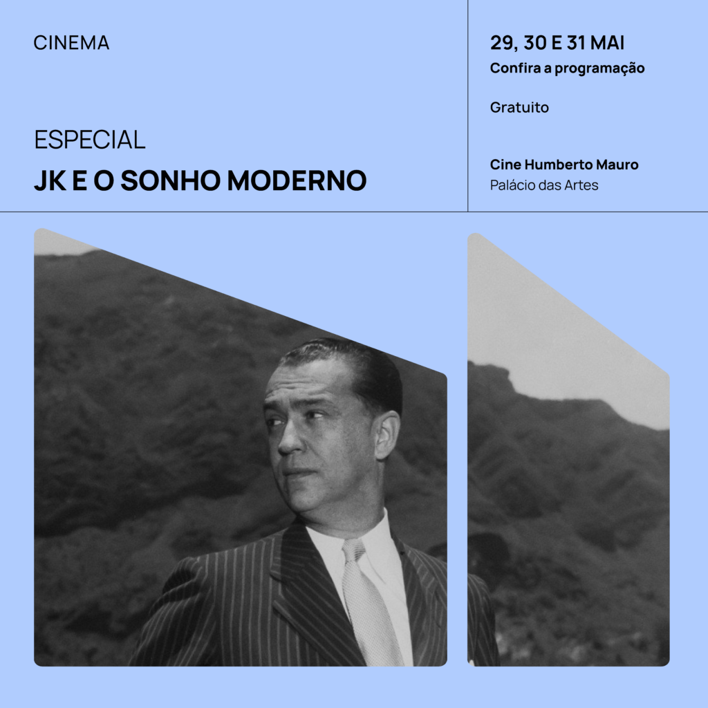 Realizada no contexto das comemorações dos 55 anos do Palácio das Artes, a mostra integra um conjunto de ações que evidenciam a ligação histórica entre o projeto cultural do estado e o ideário moderno associado a JK. Ao lado do lançamento de um livro sobre a trajetória do Palácio e de uma exposição com croquis de Oscar Niemeyer, a programação propõe um diálogo entre cinema, arquitetura e política, retomando um momento em que imaginar o futuro era também uma forma de intervenção concreta no presente.