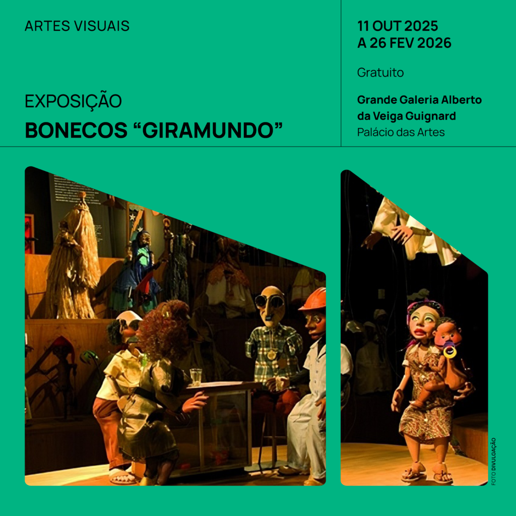 Patrimônios mineiros — A exposição é uma realização da Fundação Clóvis Salgado, por meio da Gerência de Artes Visuais, em parceria com o Giramundo, reunindo a maior coleção de bonecos do Brasil. Mais do que uma exibição do acervo, a mostra, em consonância com o compromisso institucional da FCS, assume também a tarefa de inventariar e restaurar o acervo do grupo, protegendo uma coleção singular — verdadeiro patrimônio de Minas Gerais. A exposição integra ainda a “Ocupação Giramundo”, um projeto mais amplo que reúne apresentação teatral, mostra de cinema, atividades educativas e visitas guiadas — uma programação articulada para oferecer ao público um panorama abrangente do teatro de bonecos como linguagem artística e campo de formação.