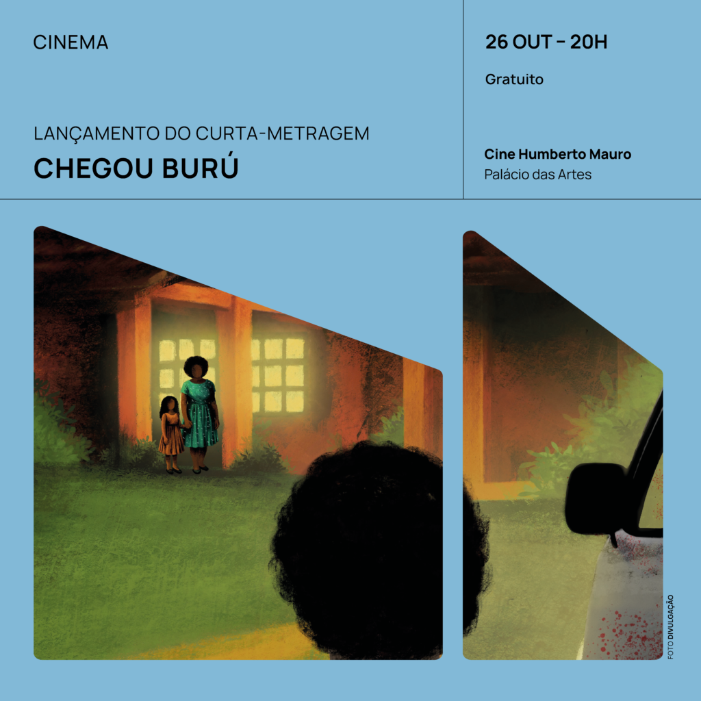 No próximo sábado, 26 de outubro, às 20h, o Cine Humberto Mauro recebe o lançamento oficial do curta-metragem Chegou Burú, dirigido por Clério Dornell. Com 19 minutos de duração, o filme é uma produção da Viagem Audiovisual em coprodução com o Projeto Dona, contemplado pelo Edital de Fomento ao Audiovisual em Contagem – Edição Paulo Gustavo (2023).