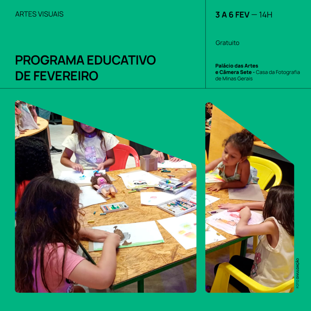 A “Programação Educativa de fevereiro” é realizada pelo Ministério da Cultura, Governo de Minas Gerais, Secretaria de Estado de Cultura e Turismo de Minas Gerais e Fundação Clóvis Salgado. As atividades da Fundação Clóvis Salgado têm a Cemig como mantenedora, Patrocínio Master do Instituto Cultural Vale e Grupo Fredizak, Patrocínio Prime do Instituto Unimed-BH e da ArcelorMittal, Patrocínio da Vivo e correalização da APPA – Cultura & Patrimônio. O Palácio das Artes integra o Circuito Liberdade, que reúne mais de 60 equipamentos com as mais variadas formas de manifestação de arte e cultura em transversalidade com o turismo. A ação é viabilizada por meio da Lei Federal de Incentivo à Cultura. Vale-Cultura. Governo do Brasil, do lado do povo brasileiro.