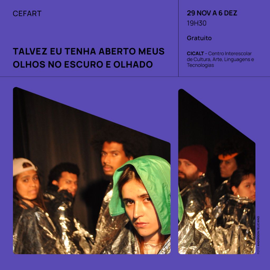 Pensar em um coletivo que decidiu migrar junto levou o diretor e dramaturgo Anderson Feliciano a iniciar a construção do espetáculo ‘Talvez eu tenha aberto meus olhos no escuro e olhado’, que tem em cena estudantes finalistas do curso técnico em Teatro do Centro de Formação Artística e Tecnológica (Cefart). O grupo, composto por 13 pessoas, forma o coletivo teatral Boca da Noite e iniciou os ensaios em agosto.