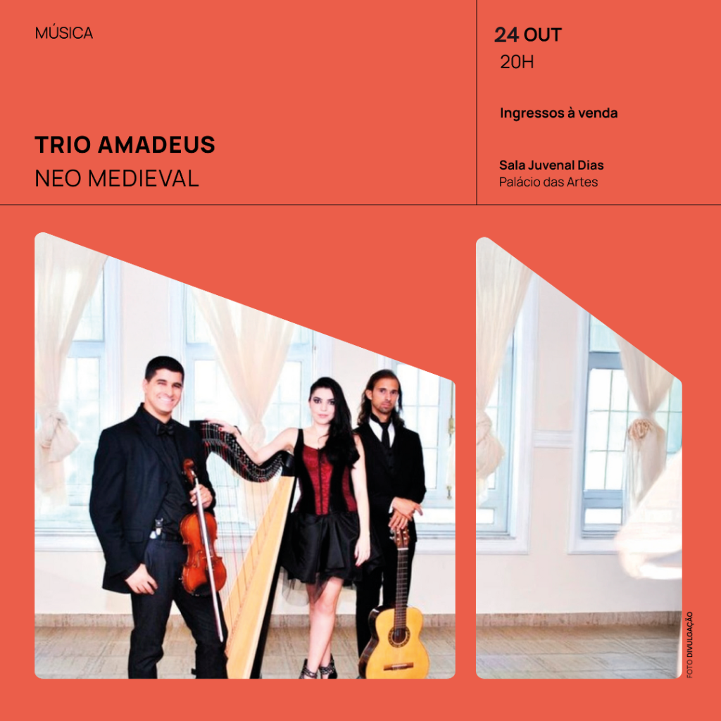 O Trio Amadeus convida o público para uma noite especial e emocionante com o show “Trio Amadeus Neo Medieval”, que será apresentado no dia 24 de outubro, na acolhedora Sala Juvenal Dias, do Palácio das Artes.