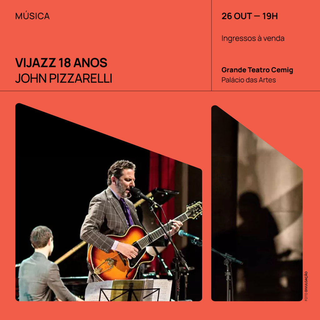 O renomado guitarrista e cantor norte-americano John Pizzarelli retorna a Belo Horizonte para uma apresentação única no dia 26 de outubro de 2025, no Palácio das Artes. O espetáculo integra a programação especial que celebra os 18 anos do Vijazz & Blues Festival, um dos maiores e mais respeitados festivais de música instrumental, jazz e blues do Brasil.