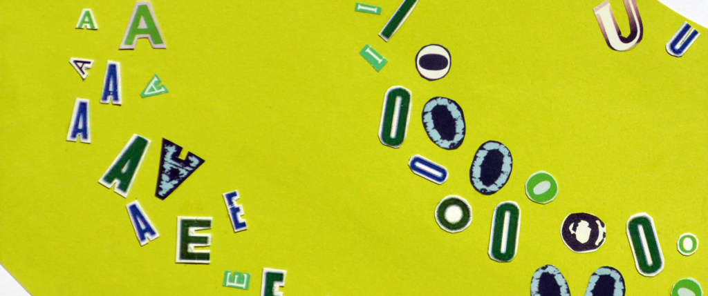 Para isso, você pode recortar várias letras de revistas, jornais ou outros materiais impressos, de cores e tamanhos variados. Com as letras recortadas, você irá experimentar várias formas de juntá-las, até achar uma que você goste. Pode até criar uma figura que não se pareça com nada que exista. Experimente: brinque de usar uma única letra, repetida várias vezes, só vogais ou, ainda, todas as letras do alfabeto para compor sua imagem.