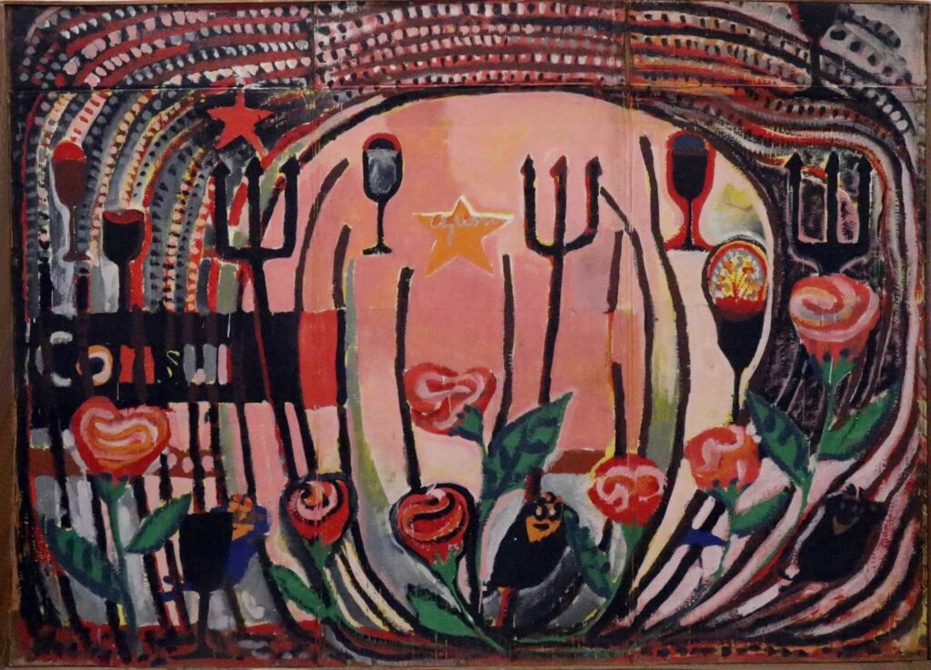 Jorge dos Anjos, Festa, têmpera vinílica sobre papelão, 160 x 220 cm, 1984.